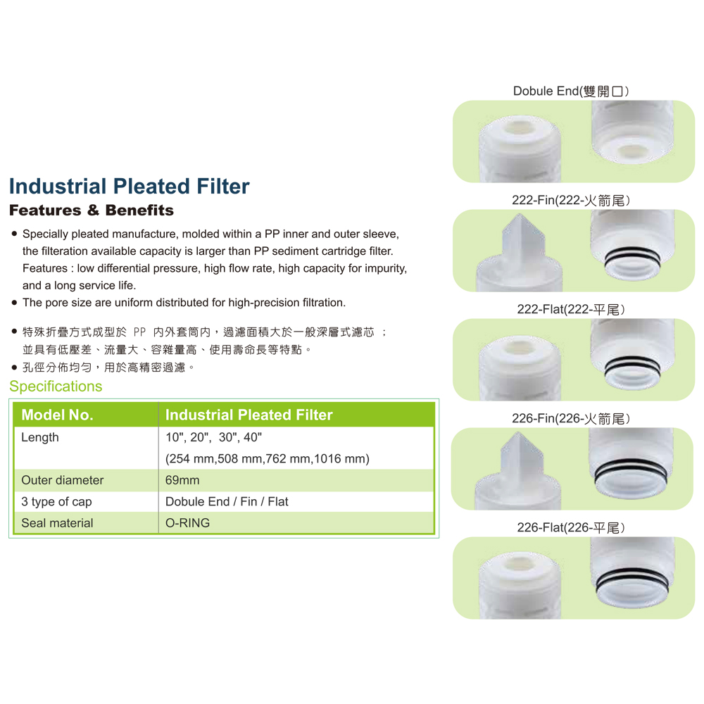 ผลิตจากวัสดุจีบพิเศษ ขึ้นรูปภายในปลอกด้านในและด้านนอกทำจาก PP